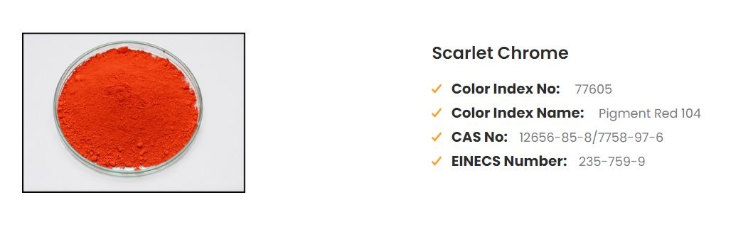 Molybdate Orange pigment and is also popularly known as Scarlet Chrome. Our Scarlet Chrome is a product with yellower / bluer tone. It is highly stabilized and offers very good resistance to light and weather.